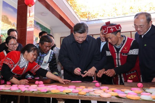 2020年春节前,习总走进李发顺家,同亲亲们围坐正在一路聊家常。李发顺邀请总一路制做大米粑粑。